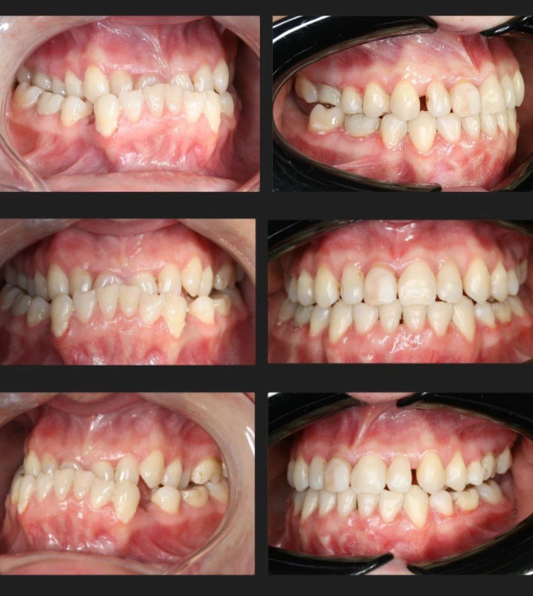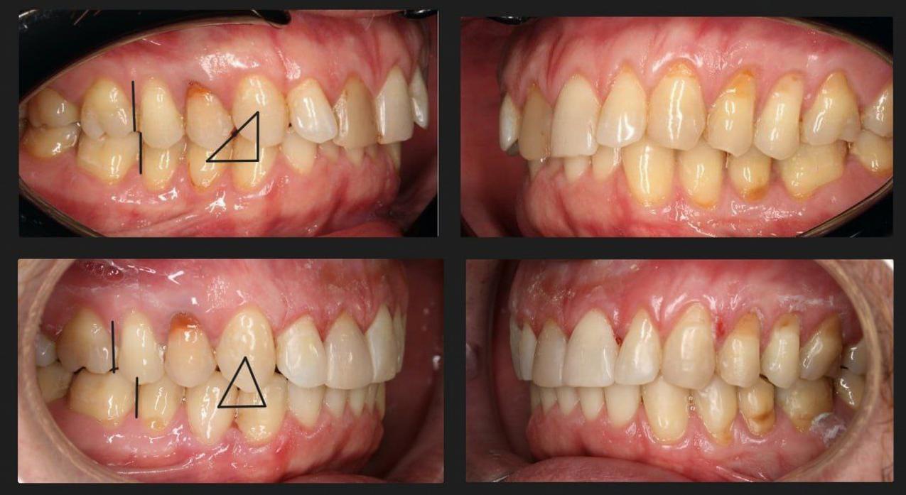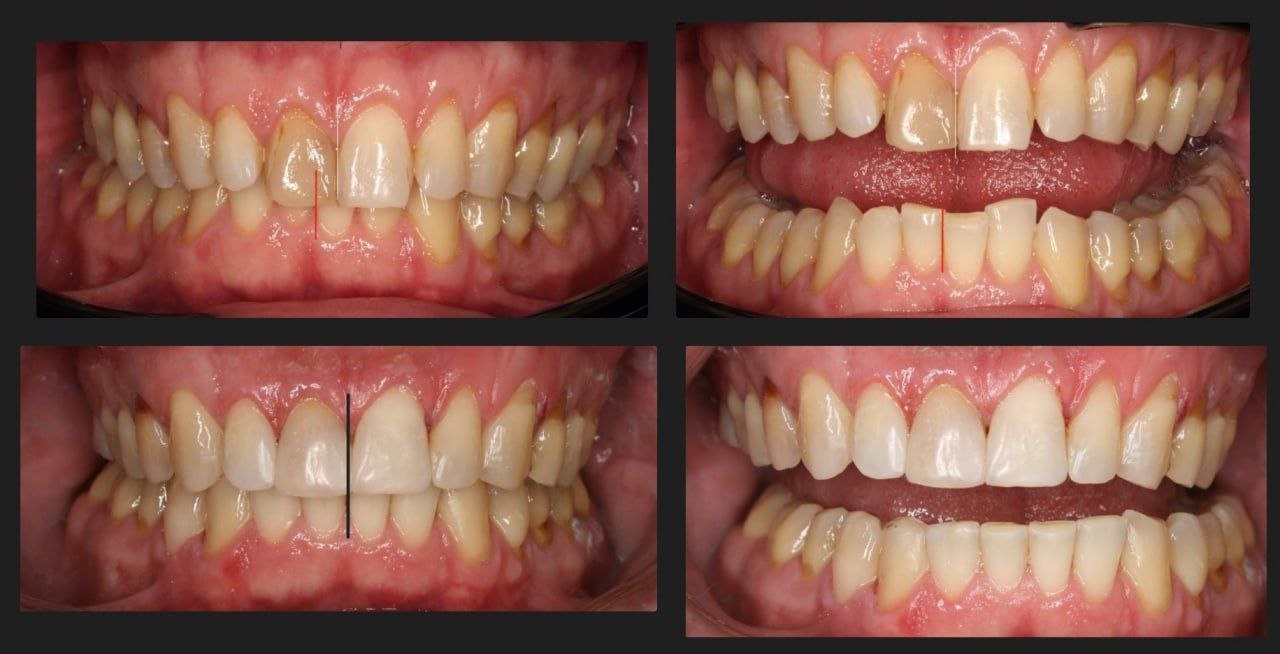 В итоге достигнуто правильное перекрытие — верхние зубы перекрывают нижние и плотность контактов.